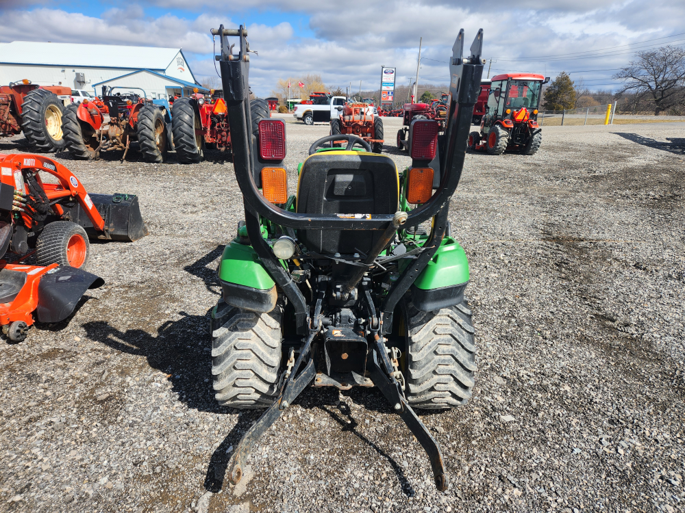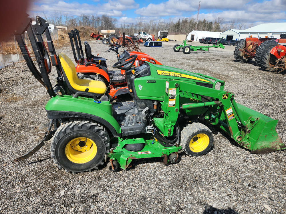 Used 2015 JD 1023E Tractor with 120 XL Loader and 60" mid mount mower, s/n ILV1023ETEH414983, 23 hp, diesel, 4wd, 1017 hrs. In good condition!